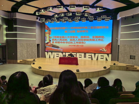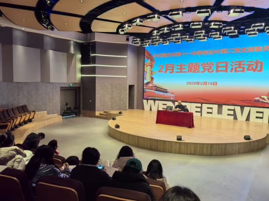2025 年 2 月 15 日下午两点,初中第二党支部在文德中学校江南新城校区的科技报告厅开展了二月主题党日活动。此次活动旨在深入学习党的重要理论,为新学期的工作筑牢思想基础,全体党员满怀热忱地积极参与,现场弥漫着浓厚的学习氛围。