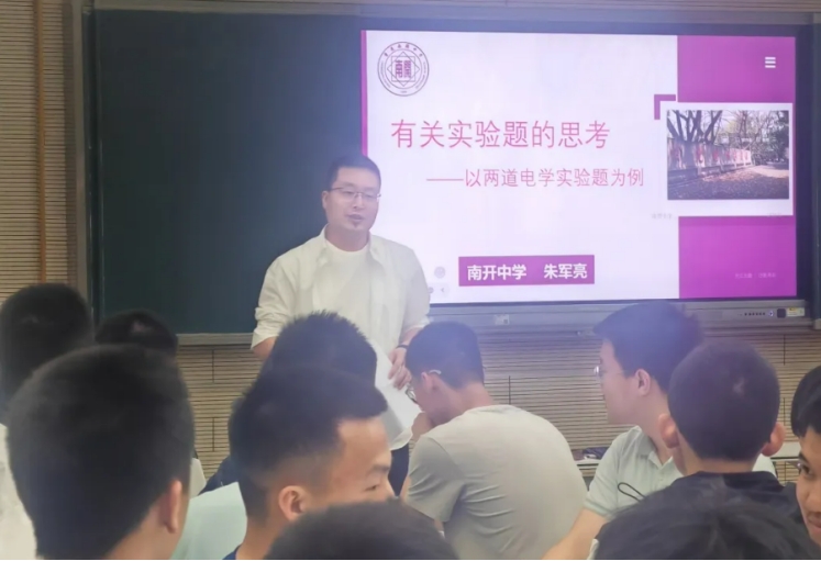 物理组以“电学实验”为课题,我校银纯林老师从基础操作切入,强调实验规范;南开中学朱军亮老师逆向解析命题思路,强化思维建模。朱老师还分享了高考复习策略,为冲刺阶段备考指明方向。