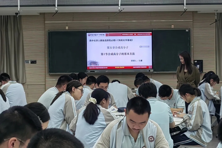 化学组围绕“高分子合成”开展课程,我校马骥老师通过生活化案例引导学生探究反应原理;南开中学贾龙贤老师以“结构—性质—应用”为主线,培养学生学科思维。贾老师的有机化学专题讲座为教学实践提供了宝贵经验。