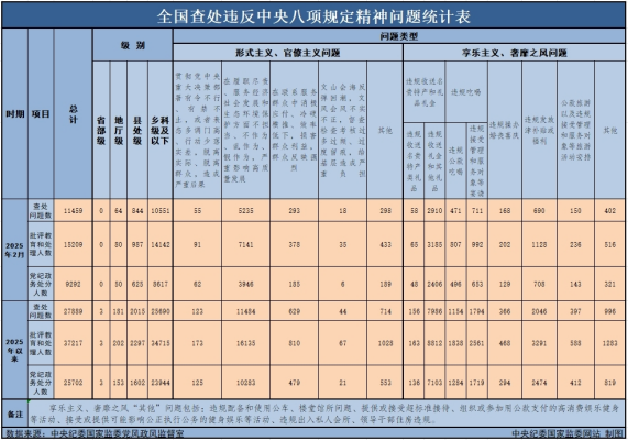 3月29日,中央纪委国家监委公布了2025年2月全国查处违反中央八项规定精神问题汇总情况。这是连续第138个月公布月报数据。