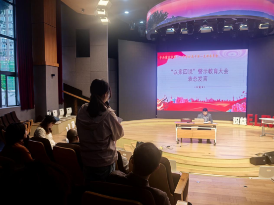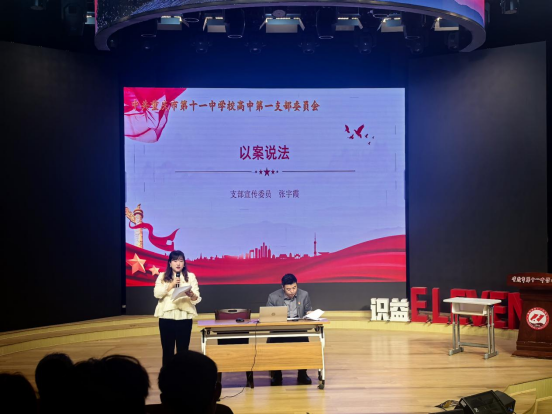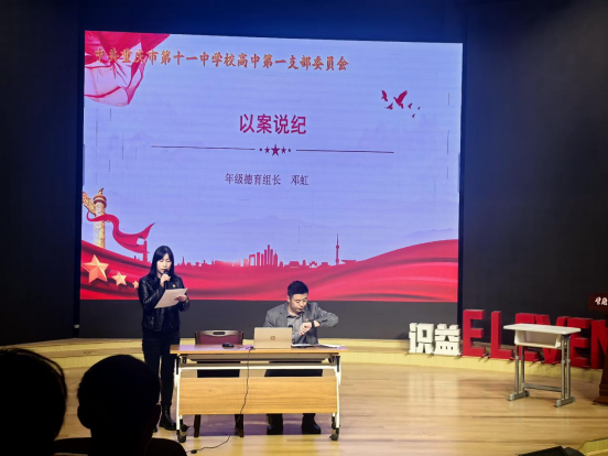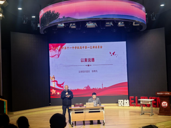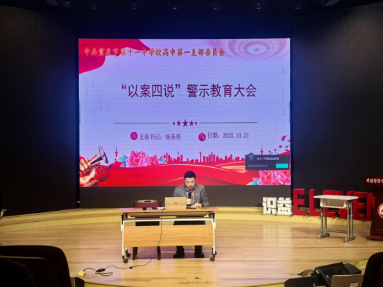 为进一步深化全面从严治党,强化党员教师的纪律意识和责任担当,2025年10月21日上午8时,中共重庆市第十一中学校第一支部委员会在识益演播厅组织召开“以案四说”警示教育大会。会议由党支部书记徐英男同志主持,高中第一党支部全体党员参会,学校纪委书记常蕊同志莅临现场指导。